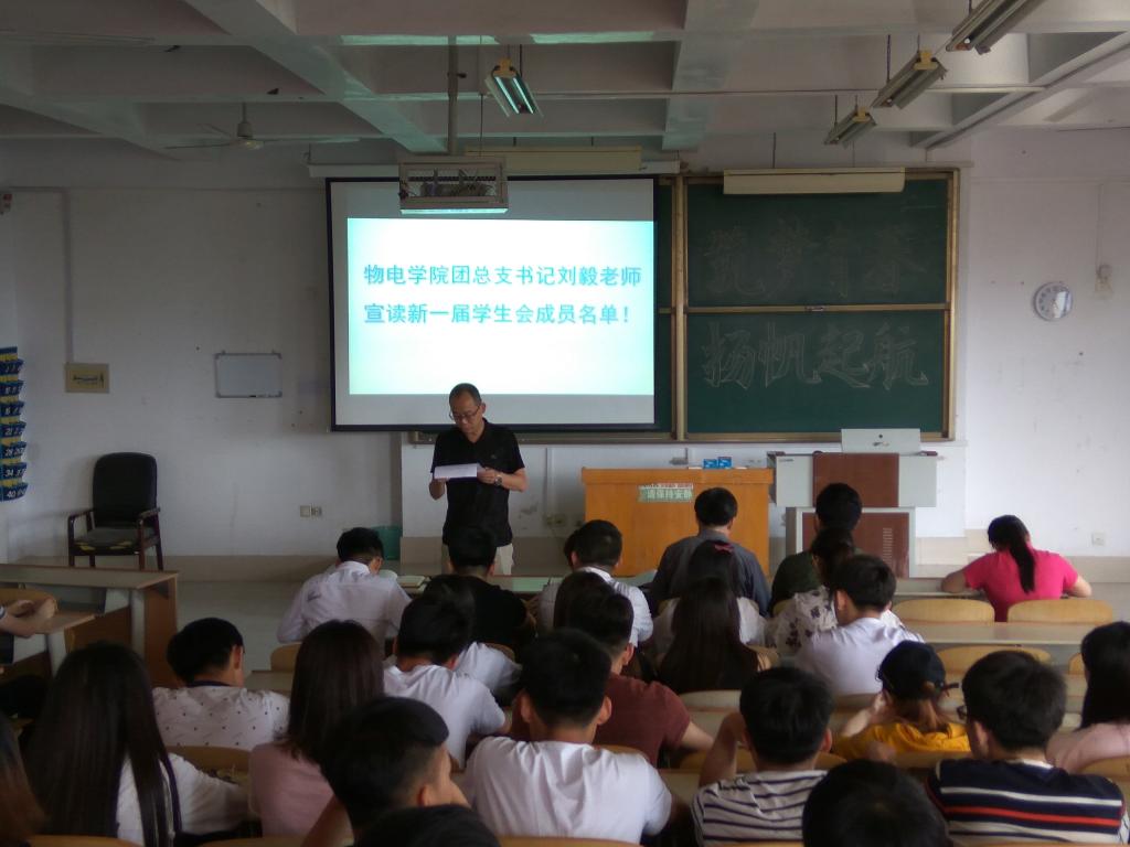 5月16日,开云kaiyun体育于求真楼4008教室举办了2017年学生会换届大会。党总支书记赵庆福、党总支副书记冯琨、开云kaiyun体育全体辅导员老师出席本次大会,所有学生会成员参加此次大会。