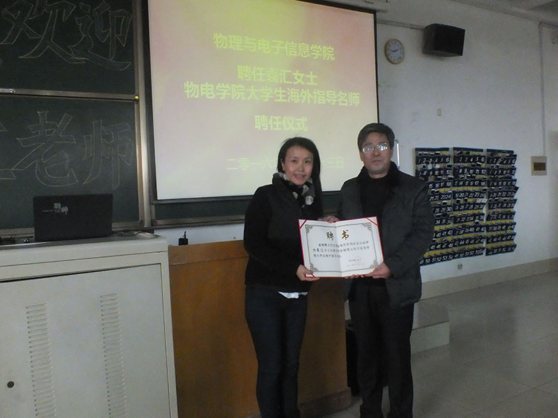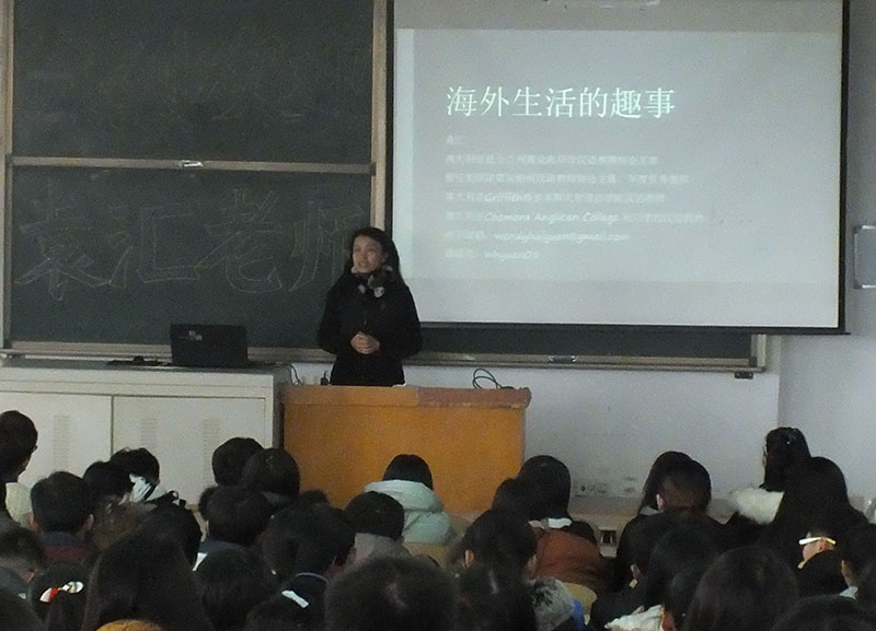 12月13日下午,开云kaiyun体育在求真楼3001教室正式聘任澳大利亚黄金海岸库玛拉圣公会学院中文教师、澳大利亚黄金海岸汉语教师协会的创始人兼主席袁汇女士为开云kaiyun体育大学生海外指导教师,并为开云kaiyun体育学生做“天生我才必有用”为主题的课外指导讲座,开云kaiyun体育党总支书记赵庆福、党总支副书记冯琨和300余名同学参加此次讲座。