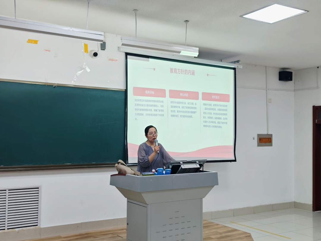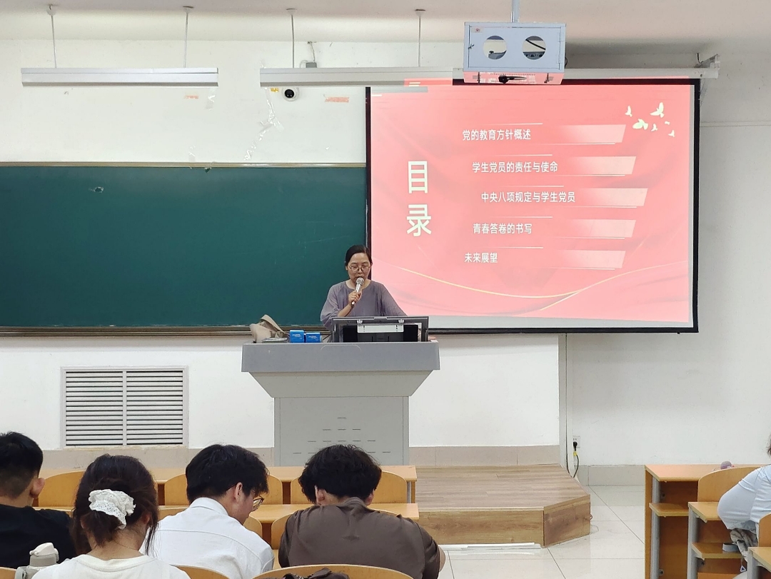 为深入贯彻党的教育方针,强化青年党员思想政治引领,6月23日下午,开云kaiyun体育副院长贾冉为全体学生党员、入党积极分子讲授“传承·创新·担当——党的教育方针与我们的青春答卷”专题党课。
