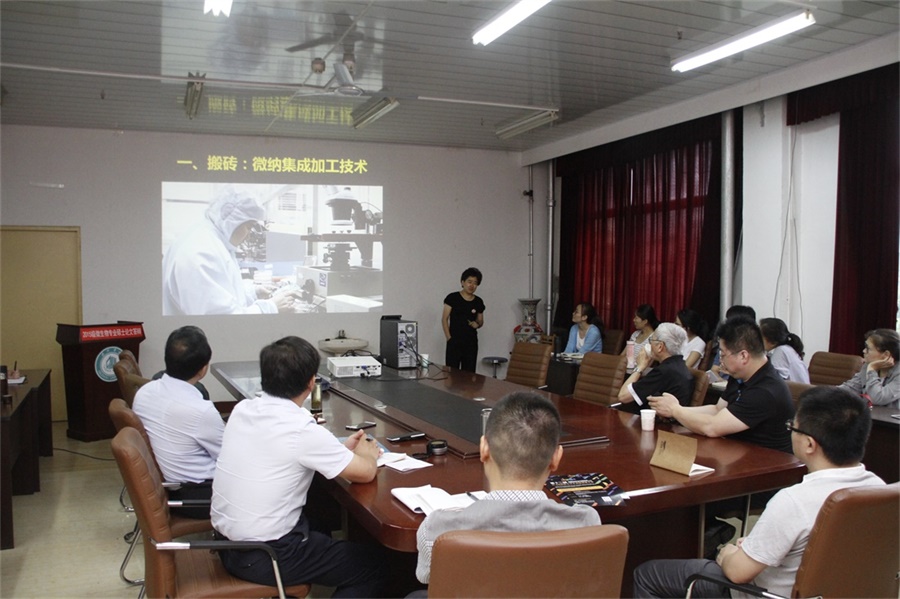 报告会上,张海霞教授详细介绍了她带领的Alice Wonderlab研究团队近年来在微能源领域的研究过程、研究成果和示范应用。她将自己的研究过程形象的比喻为“搬砖、砌墙、开窗、盖房”四个阶段。其中“搬砖”代指掌握微纳集成加工技术,“砌墙”代指微型能量采集器制作,“开窗”代指走出去看外面的世界,“盖房”代指团队最终形成的微纳新能源技术。张教授通过丰富的实例具体形象地展示整个团队科研创新的全过程以及一路走来的酸甜苦辣,强调“科研必须要创新”、“创新难在敢想、贵在坚持”。张教授的报告图文并茂、风趣幽默、激情洋溢、发人深省,讲解高科技的同时,她那创新的理念、激情无不感染着在场的每一位听众,更引发了大家对科技、教育、社会三者的深思,并产生一致共鸣。最后,大家针对“可穿戴微纳技术研究及应用”展开热烈讨论,在互动环节中,张教授认真回答了老师们的提问,进行了有效的双向交流。