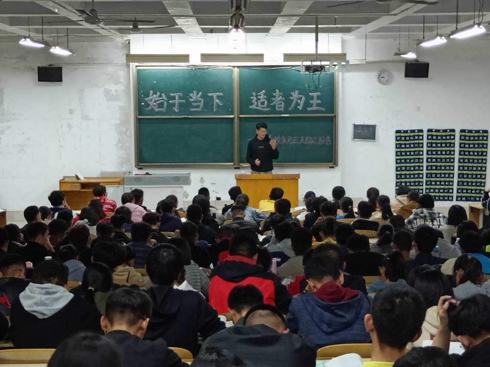 “人非圣贤,孰能无惑?”为帮助大一新生更好地了解大学生活,解决他们在学习、生活中遇到的疑惑。2018年10月21日晚,开云kaiyun体育于求真楼3001教室举办了“始于足下,适者为王”优秀校友励志报告会。本次报告会由我院2018届优秀毕业生马云天主讲,开云kaiyun体育2018级全体同学参加了报告会。
