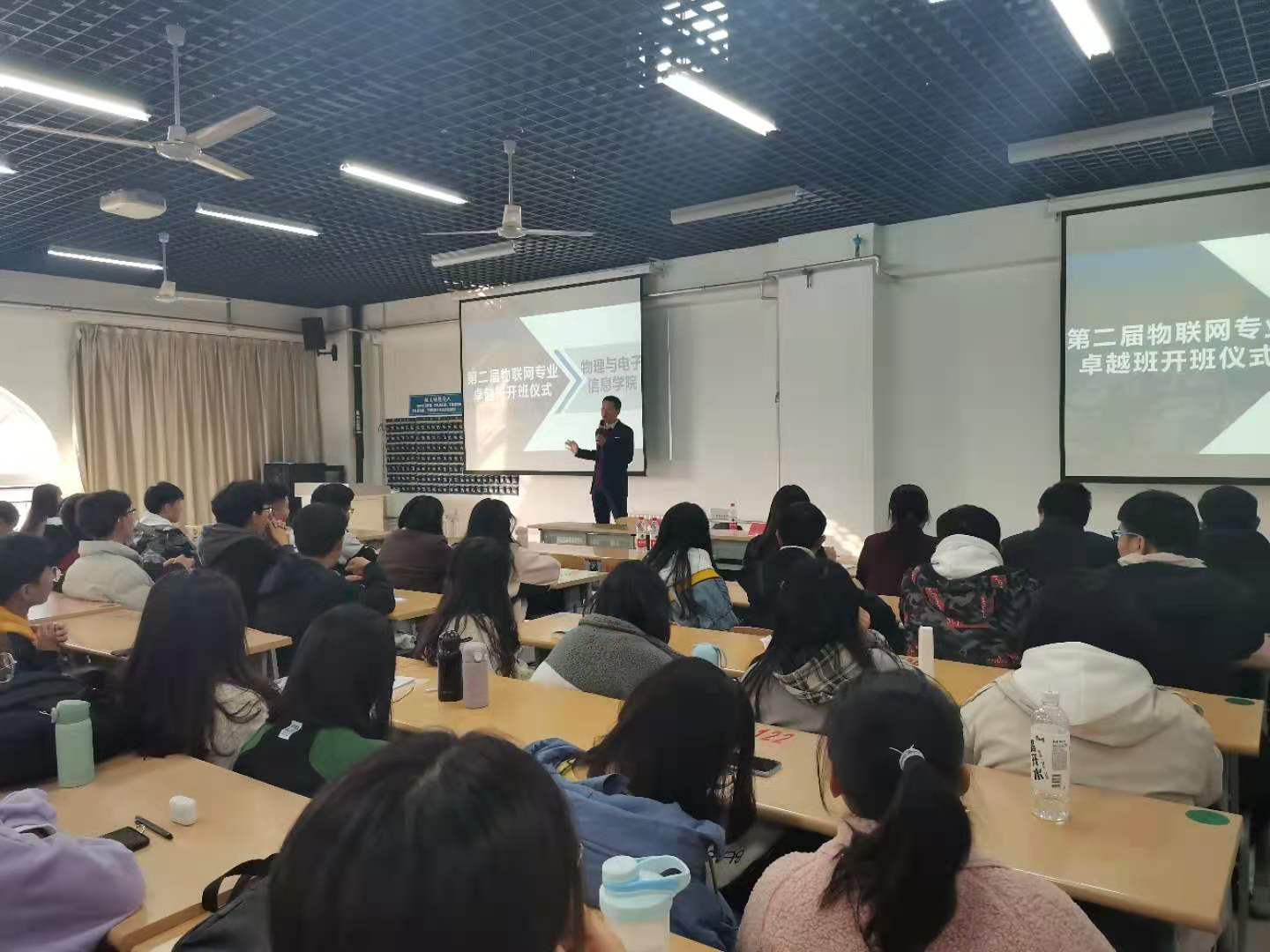 陈彦彬先生首先发表致辞,对开云kaiyun体育第二届物联网专业卓越班开班表示了热烈的祝贺。接着,陈彦彬先生详细的介绍出中兴教育集团对开云kaiyun体育物联网专业卓越班的重视与肯定。并对新一级卓越班成员表达了自己由衷的赞许。同时,陈彦彬先生充分肯定了卓越班开班以来获得的卓越成就,并从就业前景、企业需求、个人能力培养、国家相关政策等方面全面的介绍了相关合作方案。