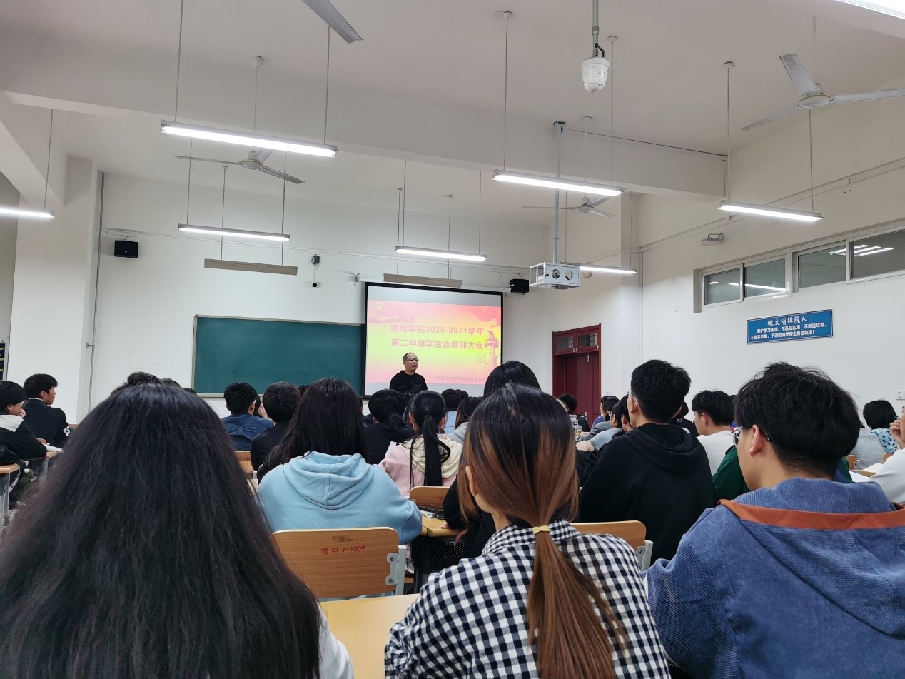 团总支书记刘毅老师对第一学期的工作进行总结,从多方面对学生提出要求并说明接下来的工作重点。首先,刘毅老师从两个方面指出学生存在的问题并提出对学生工作的要求。部分学生会干部不能在干好本职工作的同时提高成绩,存在挂科现象,对于挂科严重的干部应撤出其职务,不严重的干部应留部察看;学生会干部学习、工作效率、领导能力有待提高。对学生会成员的要求:学生的首要职责是学习,学生干部应该把学习放在首位,必须把学习搞好,成绩是做任何学生工作进行的基础;提高自己的学习、工作效率,对于一件事情,要先弄懂再去做,切实抓好学习、工作效率。其次,刘毅老师说明了接下来学生会的工作重点:运动会、校庆活动、送毕业生及六月份整理大四毕业生材料。这就需要我们全体学生会成员共同努力。对于运动会,各部门配合体育部的工作,切实好做准备工作。50周年校庆将会是一个大型的活动,我们学生会各个部门应积极配合学校工作,文艺部组织好我院节目。送毕业生和整理毕业生材料是一个很细致的工作,这要求部门成员提高工作效率,做到分工负责的同时加强团结,争取在一周内完成。最后,刘毅老师对接下来的工作做了规划。在接下来的各项工作中,各部门成员做好自己的本职工作,提高工作效率,端正态度,加强各部成员之间的配合协作,做到每个活动都条例、有序进行。