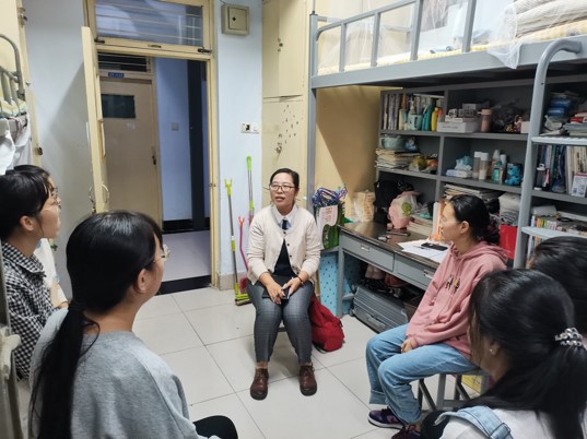 在此次活动中,老师们同学生亲切地交谈,细致询问了同学们学习、生活等方面的情况,提醒学生注意寝室安全问题。老师们还特别叮嘱新生们要及时添衣保暖、注意身体健康,遇到困难及时和老师反映,并提醒同学们要整齐摆放好桌椅,整理好物品,共同营造良好的宿舍氛围。