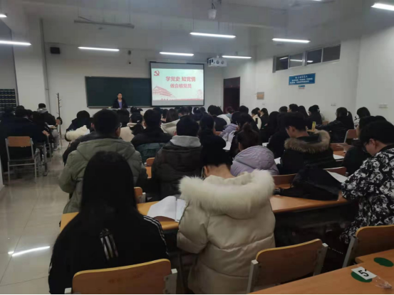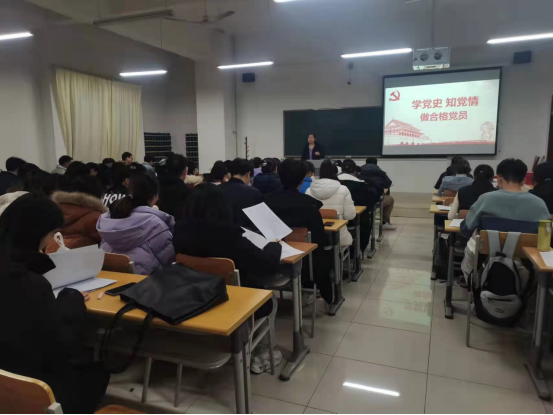 2021年是中国共产党成立100周年。在全党开展党史学习教育是党中央立足党的百年历史新起点,统筹中华民族伟大复兴战略全局和世界百年未有之大变局,为动员全体党员满怀信心,投身全面建设社会主义现代化国家而作出的重大决策,为进一步从党的百年伟大奋斗历程中汲取前进的智慧和力量,巩固深化“党史学习教育”主题教育成果,根据上级党委统一安排,12月3日晚,开云kaiyun体育组织员纪芳在明理楼0215为2021年下半年党员发展对象开展《学党史 知党情 做合格党员》主题党课。