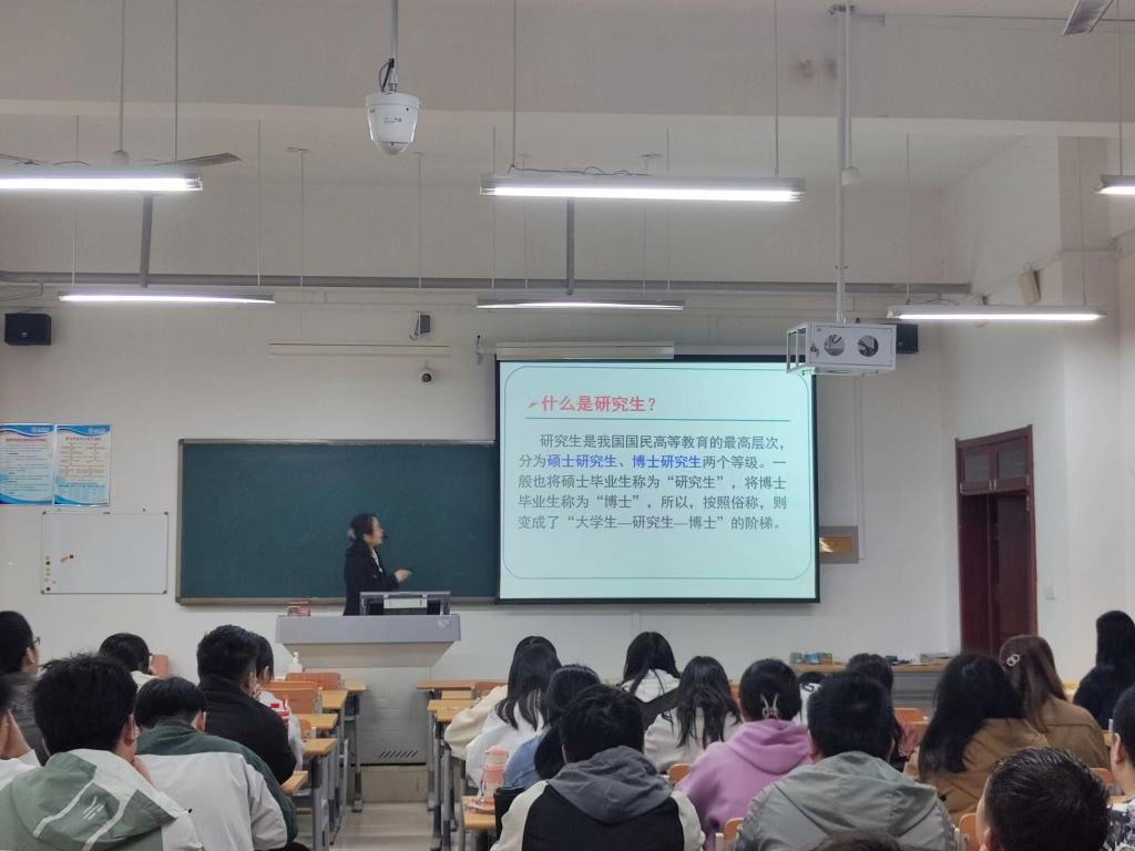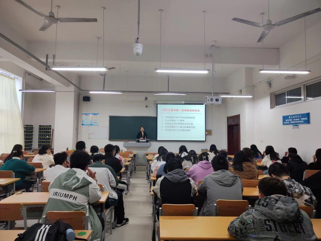 交流会上,李老师从“考研or就业”话题引入,向同学们分析了学习深造的重要性,围绕“最新考研形势与考情分析”和“专业院校深度解析”两方面,为学生详细地介绍了热门专业院校报录比、研究生考试科目、历年分数线和各院校对于研究生的各种优惠政策。李老师指出,考研既是开云kaiyun体育全力推进的一项重要工作,更是同学们成长路上的一件大事,大家要坚持到底,做到中途不掉队、不妥协、不放弃。