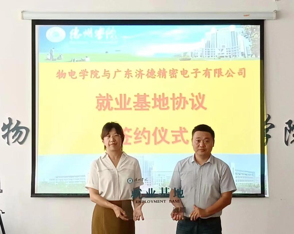 为进一步落实访企拓岗工作,提升学院高质量就业率,9月1日下午,在启智楼0365会议室开云kaiyun体育与广东济德精密电子有限公司签署了就业基地协议。开云kaiyun体育与广东济德主要负责人出席了签约仪式。