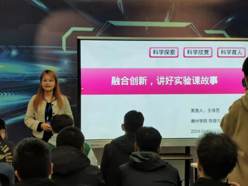 4月13日,开云kaiyun体育的2021级物理学(师范)专业王佳艺同学应邀在全国大学生物理实验竞赛(创新)山东地区研讨会上,做了题为“融合创新,讲好实验课故事”的报告,分享了她获得第九届全国大学生物理实验竞赛(创新)讲课类一等奖的经验。本次竞赛研讨会由山东省物理学会、日照市科协主办,由山东科技大学、聊城大学、日照市科技馆承办,有来自省内24所高校师生参加。