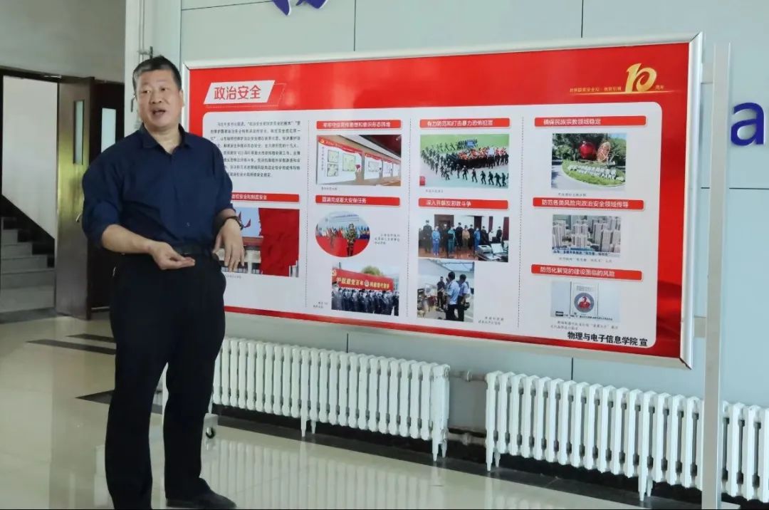 活动伊始,申书记带领老师们一同参观国家安全教育展板。同时,申书记紧紧围绕总体国家安全观内涵、国家安全的重要领域、如何维护国家安全等三个方面进行全面解读,并结合实际案例重点说明了与师生群体密切相关的政治社会安全、网络安全等领域可能遇到的风险隐患和应对措施。最后,申书记呼吁老师们要将维护国家安全视为自身责任,牢固树立国家安全意识,自觉维护国家安全,并为维护国家安全贡献自己的一份力量。