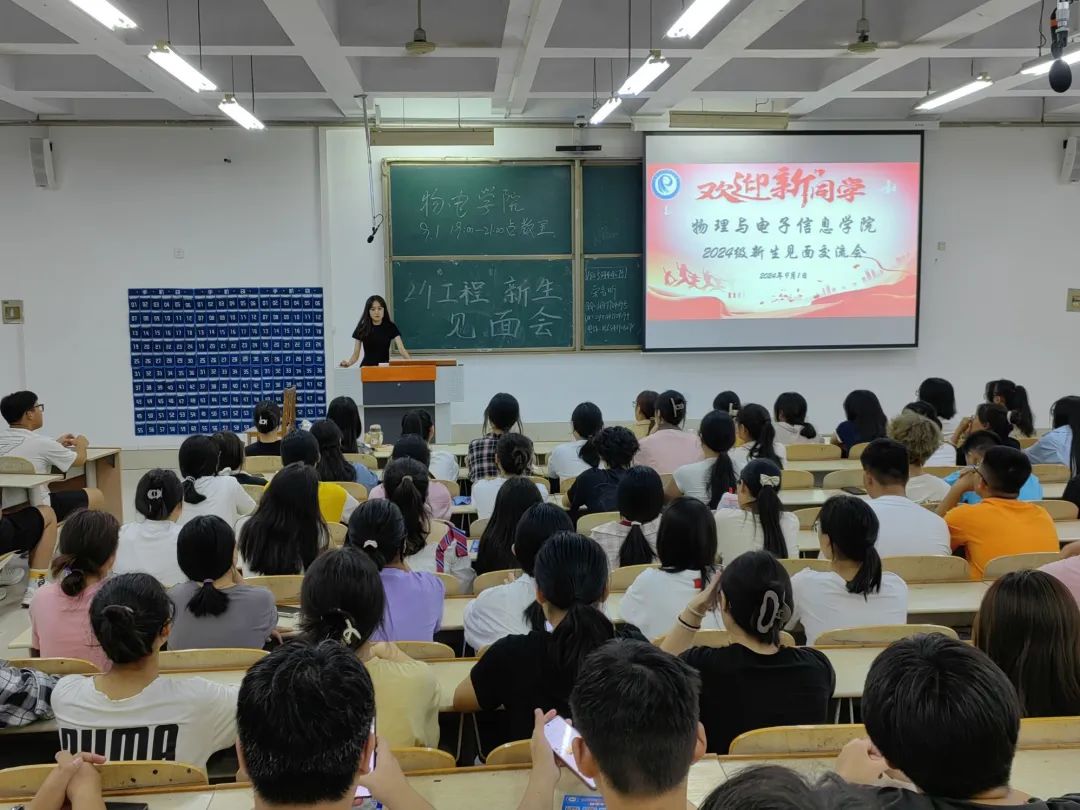 为了增进学生间的彼此了解,帮助新生更好地融入校园生活,增强集体凝聚力,开云kaiyun体育于9月1日晚在求真楼召开2024级新生见面会。