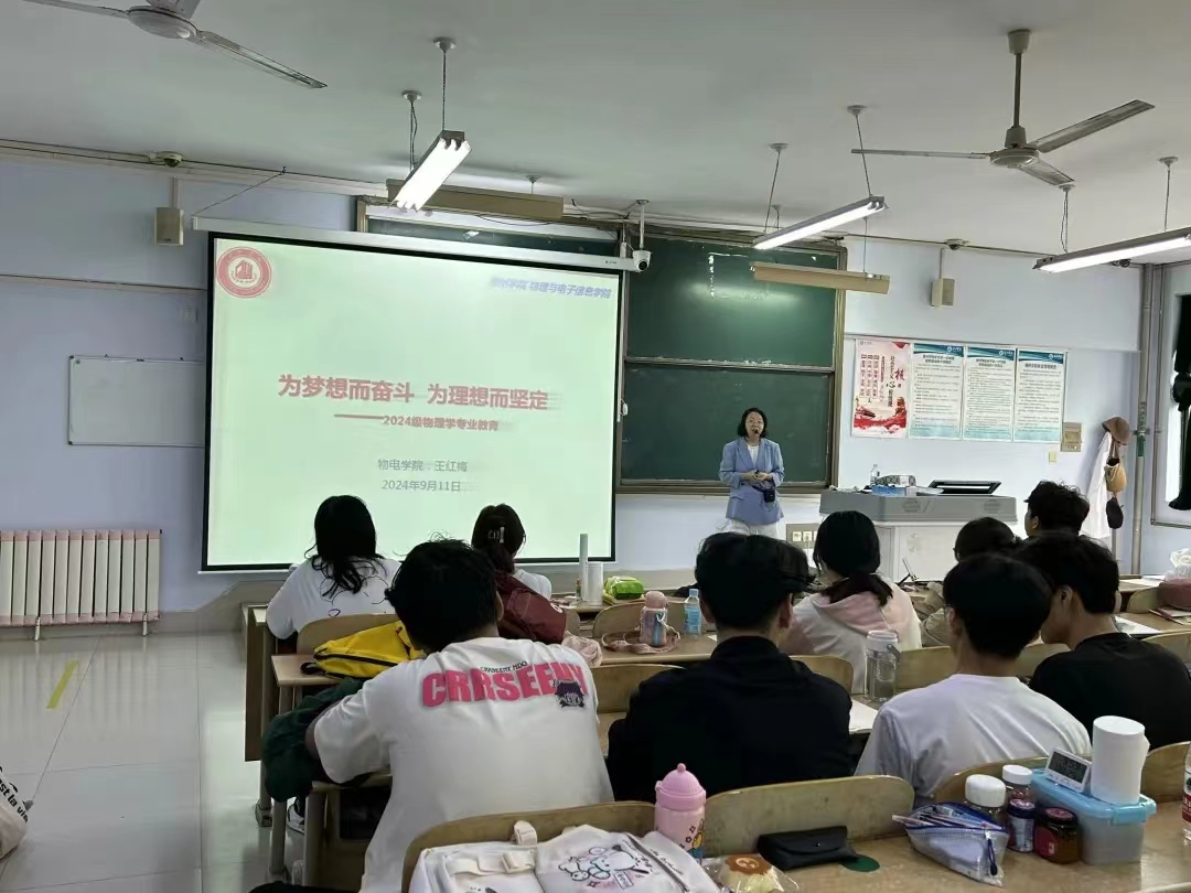 物理学(师范类)专业主任王红梅老师向同学们介绍了物理学的创建及发展历程,并强调了物理学的重要性。同时,介绍了物理学师资概况、教师教学获奖、教学成果及科研成果四个方面的情况,向同学们展示了物理学师资力量和教学质量。