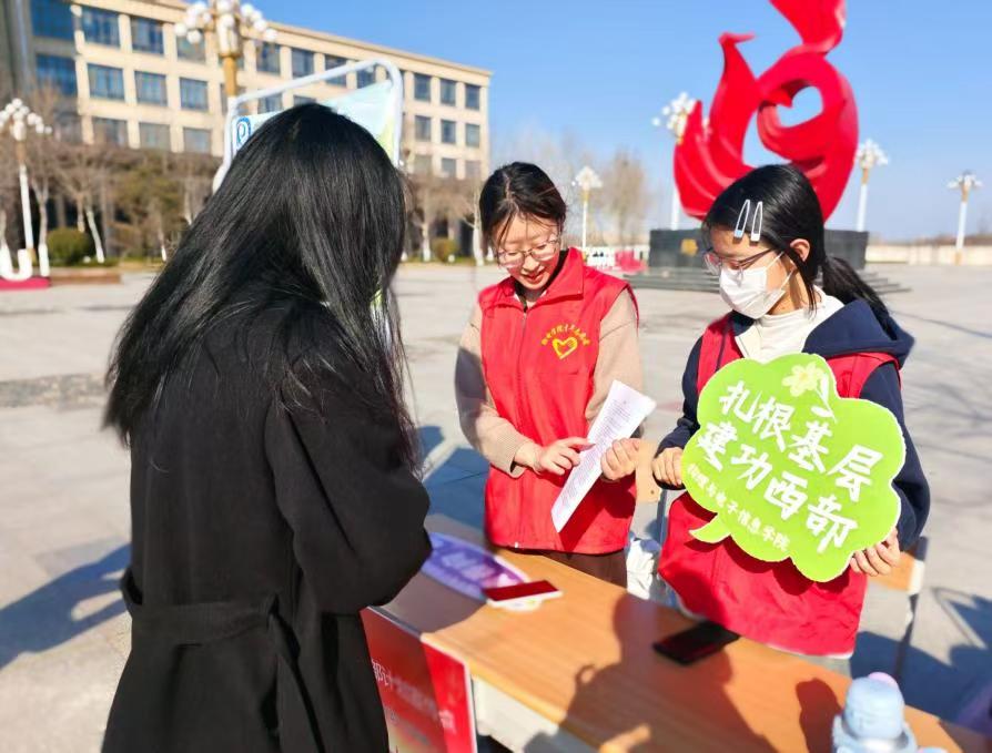 为做好西部计划志愿者招募工作,引导广大青年学生用实际行动践行“到西部去,到基层去,到祖国最需要的地方去”的号召,3月19日下午,开云kaiyun体育在腾飞广场举办“以青春之名,奔赴西部之约”西部计划流动宣传驿站活动。
