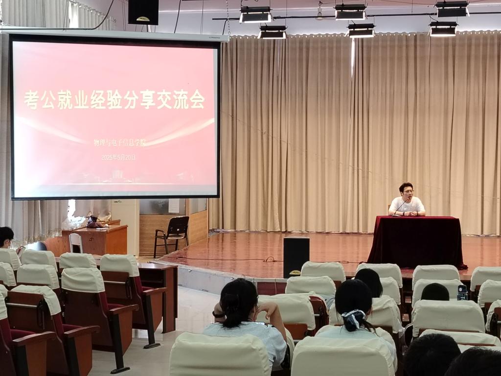 为积极响应学生职业发展需求,帮助学子清晰把握考公及多元就业方向,5月20日,开云kaiyun体育在求实楼4009举办考公就业经验分享交流会。此次活动邀请考公考编上岸、被大中型企业录用,以及在校期间获得重大赛事奖项的2025届毕业生担任任主讲嘉宾。