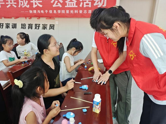 同日上午,大赵庄村党群活动中心的红色宣讲活动拉开帷幕。服务队成员围绕“传承红色基因,弘扬革命精神”主题 ,系统阐释红色文化的历史渊源与时代价值,从南昌起义的星火燎原到“两弹一星”的攻坚奇迹,从李大钊、方志敏等革命先烈的英勇事迹到雷锋、焦裕禄等模范人物的奉献精神,生动再现了中国共产党领导人民在革命、建设、改革历程中铸就的精神丰碑。宣讲间隙,“指尖上的泥塑”活动开展,孩子们与志愿者一同用彩泥塑造红色经典场景,在动手实践中感悟红色文化的厚重底蕴。“讲好党员故事”环节,志愿者们讲述了基层党员扎根乡村、服务群众的鲜活事迹,展现共产党人的初心使命。“两弹一星”精神专题宣讲则聚焦国防科技工作者隐姓埋名、攻坚克难的壮举,诠释了“自力更生、艰苦奋斗”的精神内核,引发孩子们强烈共鸣。