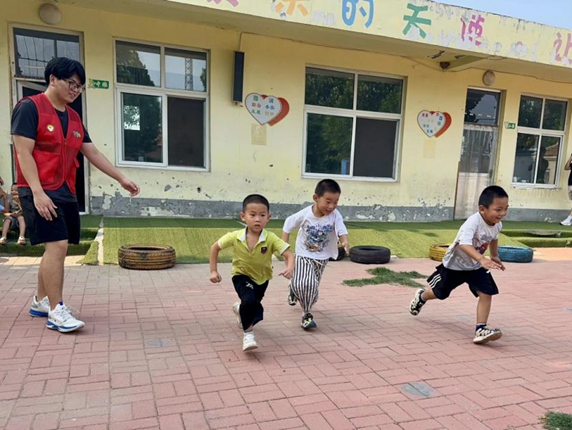 在南北官庄幼儿园,志愿者以“运动安全”为主题精心策划了趣味运动会。活动设置了篮球赛、赛跑等符合幼儿特点的项目,将运动安全知识融入赛事环节。志愿者们结合专业运动指导内容,现场讲解运动着装规范、热身技巧及不同天气下的运动注意事项,引导孩子们在欢乐竞技中树立安全运动意识。运动会现场,孩子们在志愿者的引导下有序参与各项赛事。篮球赛中,小选手们在划定区域内体验团队协作的乐趣。赛跑项目里,孩子们按照指定跑道奋力向前,将“遵守规则、安全竞技”的理念融入奔跑之中。志愿者们全程守护,及时纠正不规范动作,确保活动安全有序进行,让“安全锻炼促健康”的理念扎根童心。