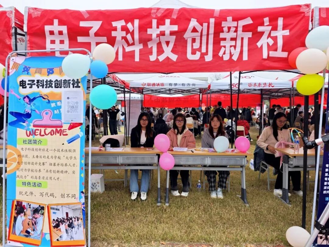 电子科技创新社展区提前布置就绪,宣传海报与活动图片展板整齐陈列,清晰呈现过往技术沙龙、科创竞赛等成果。社团成员结合自身经历与专业知识,细致解答活动形式、技能提升方向等疑问,充分展现专业氛围与凝聚力,现场学子纷纷填写报名表、扫码入群,为社团注入新鲜血液。