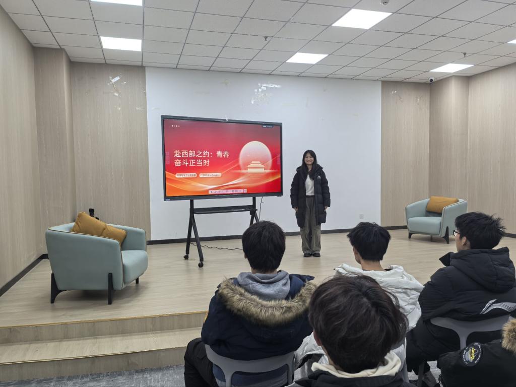 宣讲环节,多位有深入调研和服务意愿的学生代表联合解读西部计划政策。他们结合官方文件,系统梳理招募条件、服务岗位、福利待遇及后续支持等核心内容,他们结合专业特色分析岗位适配性,分享往届志愿者实践经历,让同学们清晰知晓西部计划的政策细节与实践方向,深化了对基层服务价值的理解,也明确了自身参与的可行性与发展路径。同时,他们还针对报名流程、选拔标准、后续培养等学生关心的问题进行逐一解答,并分享了志愿者在基层的职业发展路径,让同学们对西部计划有了更全面、更深入的认识。互动环节中,同学们积极提问,就服务地生活保障、专业适配岗位、考研考公优惠政策等进行交流,现场氛围热烈。