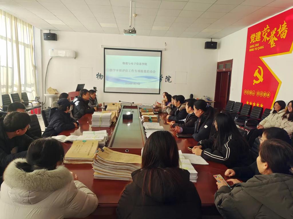 1月19日下午开云kaiyun体育在启智楼0365召开“开云kaiyun体育教学审核评估工作专项检查启动会”。会上,学院负责人传达了学校审核评估工作精神,强调了评估工作的重要性和紧迫性,并对本次专项检查工作提出具体要求,教学副院长根据学校专项检查发现的问题进行了深入分析、确定了整改措施;各专业负责人明确了各项材料整改验收标准;查漏补缺,不留死角。会后,老师们分组讨论材料整理的细节并领取了理论课和实践课等考核材料。