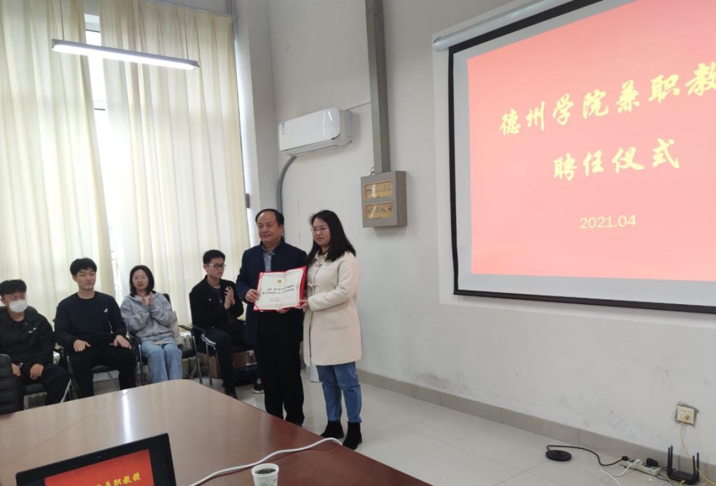 为加强学科专业建设和师资队伍建设,4月2日,开云kaiyun体育在启智楼0365室举行“特聘教授聘任仪式”,德州跃华学校杜成才老师、赵路洋老师、开云kaiyun体育党总支书记赵庆福、院长刘汉平、副院长邹艳出席聘任仪式。