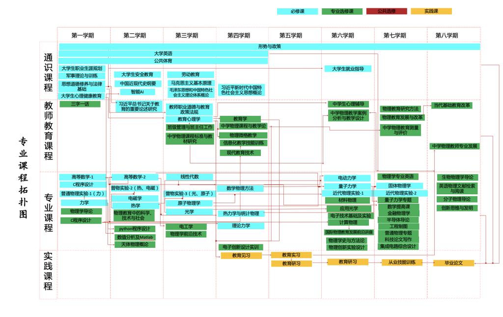 培养目标2(学科教学能力):具有扎实的物理学专业基础、物理学学科核心素养和跨学科知识,具备良好的知识整合和创新能力,能够运用物理学理论和方法解释常见的物理现象和解决物理教学和科学研究过程中遇到的问题。