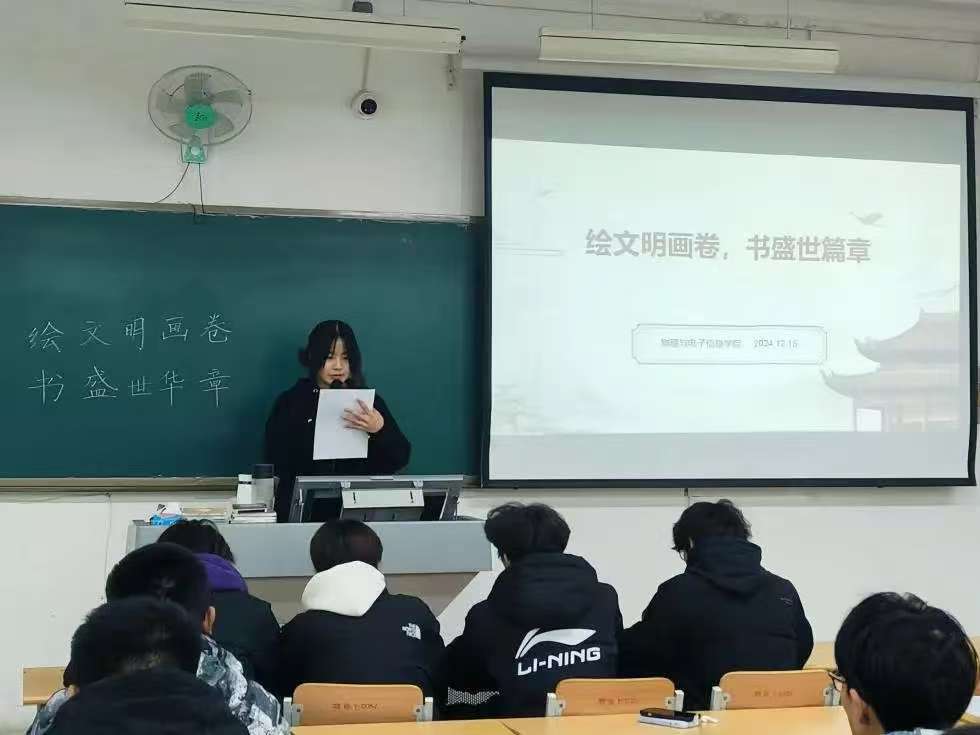 为深化大学生对文明内涵的认知,引导他们在学习、生活和职业发展中自觉践行文明规范,激发创造力和表达能力,12月15日,开云kaiyun体育在明理楼117教室举办“绘文明画卷,书盛世华章”主题活动。