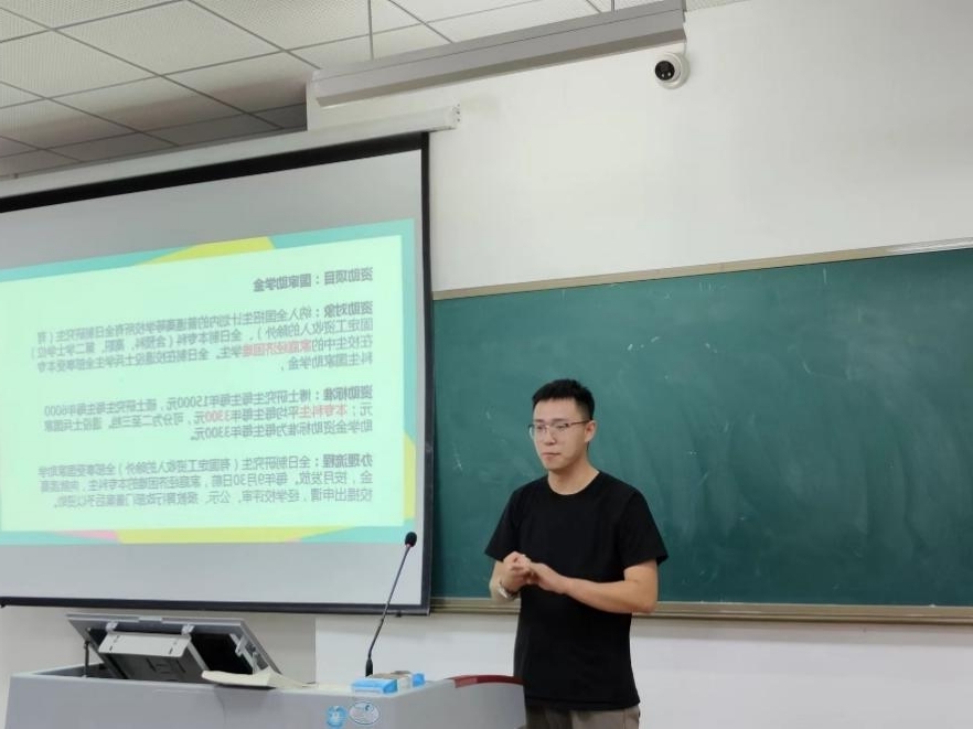 会议伊始,贾延琨老师对本次主题班会的活动流程、背景、目的和要求进行介绍并宣读山东省国助政策体系内容,讲解资助政策、资助对象、资助标准以及资助申请流程等内容,后又介绍了国家奖学金和国家励志奖学金的申请标准、评审及发放相关程序,并系统地讲述生源地信用助学贷款、还款流程等相关注意事项,以便同学们可以根据自己的实际情况正确申请奖助学金。