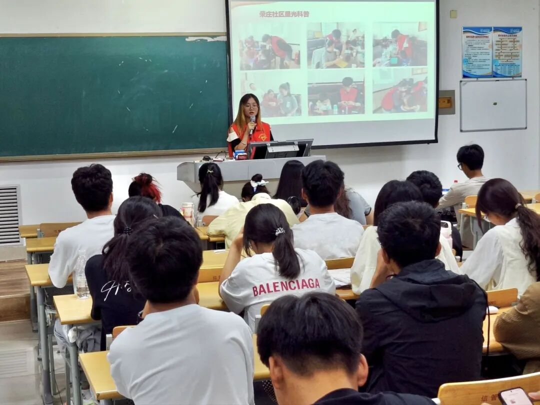 活动伊始,24级物联网工程专业孙哲琪作为主讲人,讲述了团队以“传承精神、校地协同、科技赋能”为三大核心目标,依托学院物理、电子信息专业优势,分赴山东德州、聊城、济南等多地开展“三下乡”活动,以“传承红色基因、播撒科学种子”为核心,实现“两弹一星”精神传承与科学普及双推进。团队依托专业特长,针对不同群体精准施策,开展了分层分类的实践活动:在渤海军区教导旅基地开展红色研学;在社区暑托班讲科学家故事;在乡村学校办机器人编程、水压实验等趣味科普。活动累计覆盖27个服务点,直接服务超200人次。另外,活动成效显著,获宁津县乐和社会工作服务中心感谢信肯定,累计收获各级媒体报道374篇(其中国家级36篇、省级96篇),并与20余个乡镇社区、红色基地建立长期合作,成功构建“校地协同、长效服务”实践模式,彰显青年志愿服务的社会价值。