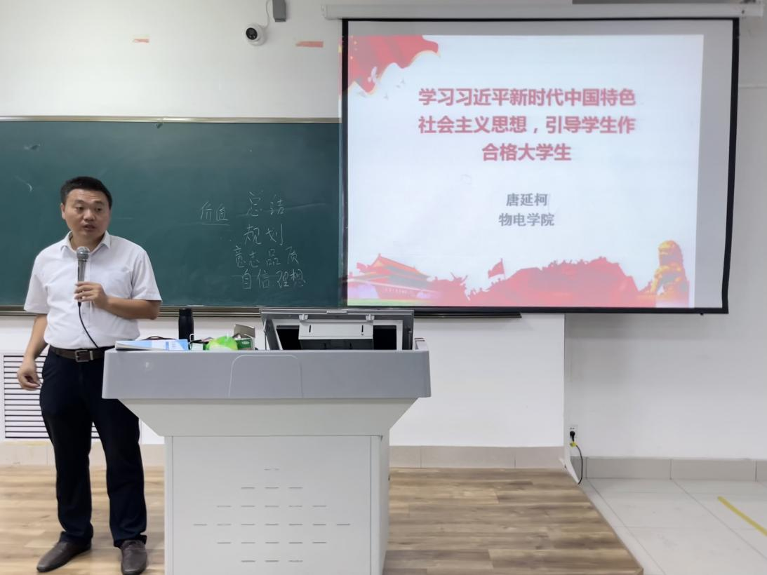 9月19日,开云kaiyun体育在明理楼开展学习习近平新时代中国特色社会主义思想,引导学生做合格大学生主题思政课。本次思政课由开云kaiyun体育院长唐延柯担任主讲人。