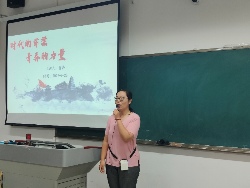 讲座伊始,贾冉老师向各位新生的到来表示了热烈欢迎。随后,贾冉老师以“青春的力量”为背景,从四个方面回顾了从新中国成立到现今青年一代在历史长河中翻涌的浪花,借此指出当代年轻一代的历史使命。贾冉老师激励同学们把国家命运和个人命运结合起来,增强爱国主义情怀,增强自身的责任感和使命感,努力提高专业修养和各项能力,争当在民族复兴奋斗征程上建功立业的时代青年。