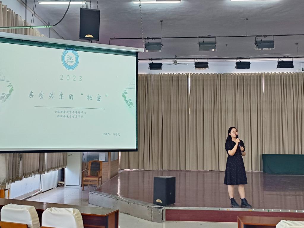 讲座中,主讲人从为什么要重视亲密关系、影响亲密关系的因素、如何经营亲密关系三个方面展开讲解,使同学们深刻认识到健康亲密关系的重要性,加深了同学们对于亲密关系的了解。同时,主讲人还告诉同学们爱与关系的需要是每个人的基本心理需要,找到影响大学生亲密关系的因素对于建立良好的关系非常重要,并鼓励大学生要树立健康的爱情观,了解彼此差异,学会自尊与尊重。