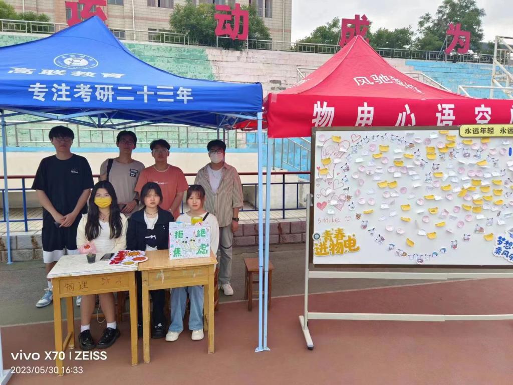 活动伊始,志愿者们为前来参与的同学仔细讲解活动内容,引导性询问参与同学最近的烦心事、开心事等生活体悟,鼓励其将自己的情绪感受写在“心声漂流签”上投递到相应的箱子中。投递完后学生在便利贴上写下自己的心愿,工作人员收集好后,粘贴在制作好的心愿墙上,组成特定的图案,一齐祝愿梦想成真。