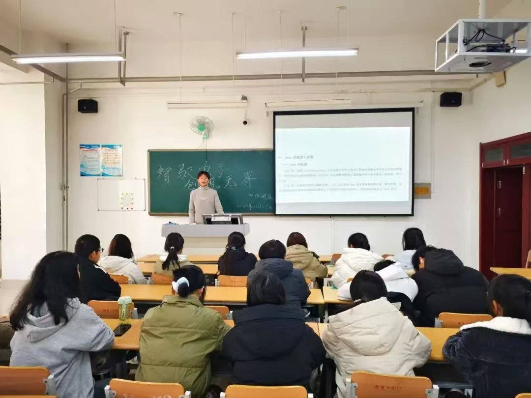 活动中,社团负责人首先围绕Java的基础语法、面向对象编程思想、以及在实际项目中的应用等方面进行了深入浅出的讲解,强调了Java编程在电子科技领域中的重要性和广泛应用。同学们还积极参与了现场编程练习和小组讨论环节,进一步巩固了所学知识,并分享了自己的学习心得和创意想法。同学们纷纷表示,此次活动不仅对 Java 这一编程语言有了更全面深入的认识,也更加明晰了未来在科技创新道路上的努力方向。