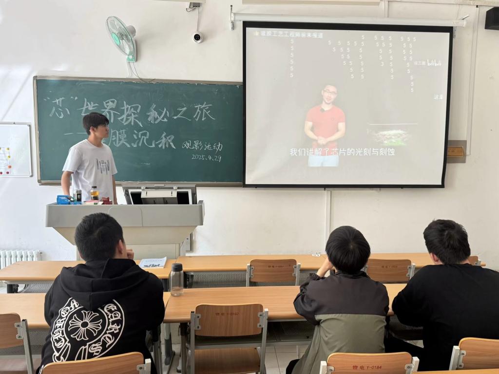 为深化同学们对芯片制造核心技术的认知,推动物理学科与电子信息产业的创新交融,4月29日,开云kaiyun体育电子科技创新社于明理楼117教室举办“芯世界探秘之旅——薄膜沉积”主题观影活动。