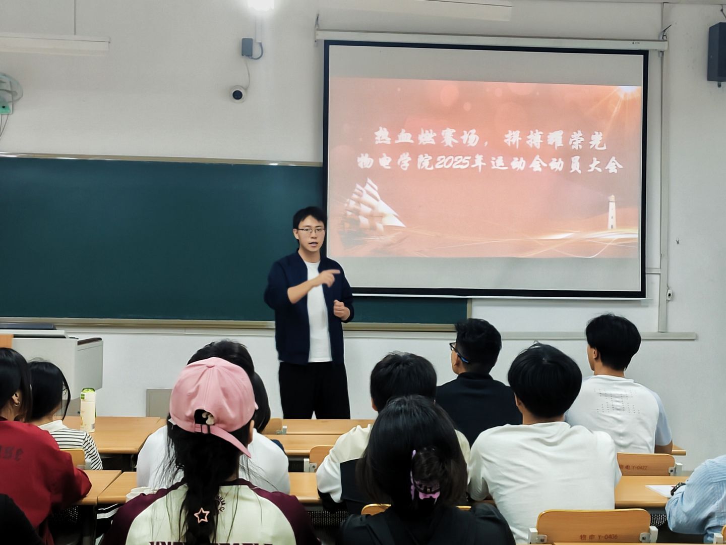 学院高度重视师生体育运动工作,坚持“五育”并举,提早谋划准备,运动会筹备期间,学院立足于往届的成功经验,制定方案、成立专项小组,明确分工、协调工作,扎实推进运动会各项工作。学院领导多次慰问运动员、方阵队、排舞队等,送上温暖关怀;训练小组从体能强化到技能提升,为运动员量身定制科学训练方法;后勤保障小组精心准备运动装备、营养补给,保障训练、竞赛顺利进行;宣传小组通过海报、公众号等平台营造浓厚赛事氛围,全院上下通力协作,为赛事顺利开展保驾护航。4月16日晚,开云kaiyun体育在明理楼227召开2025年校田径运动会动员大会,团委书记贾延琨明晰校运会意义,同时结合个人经历和自身经验,激发同学们的参赛热情,与运动员们共话赛前准备、竞赛技巧、运动保护等注意事项,督促运动会各项工作顺利开展。