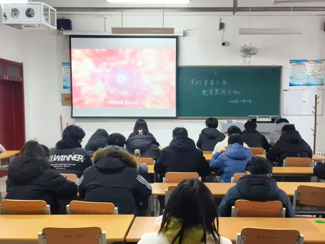 为了激发同学们对天文知识的兴趣,加深同学们对天文学的理解,提高个人的科学素养,开云kaiyun体育于12月17日在明理楼118教室举办了“漫游宇宙之夜,观摩黑洞之秘”观影活动。