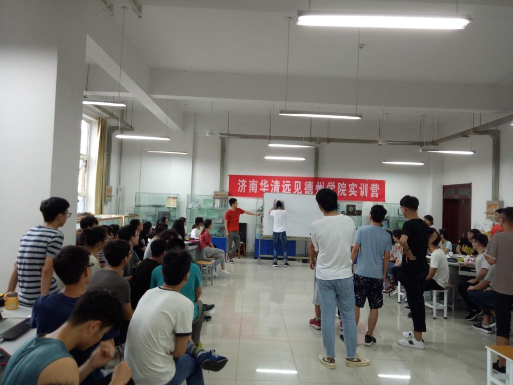 本次实训分两个班级进行,分别由华清远见的孔祥锴老师和臧泓润老师带领。这两位老师讲课方式新颖,理论与实践双管齐下,耐心为同学们答疑解惑,很受同学们欢迎。在实训过程中还穿插了自我介绍、团队蒙眼画图、气球接力和过河搭桥等多种团队竞技活动,有效缓解了集中学习的疲惫,增强了班级的凝聚力。5月16日,华清远见公司济南分公司总经理李鹏为同学们做本专业的就业方向规划,让同学们对未来发展有进一步的了解。最后,本次实训以团队形式的精彩答辩结尾。